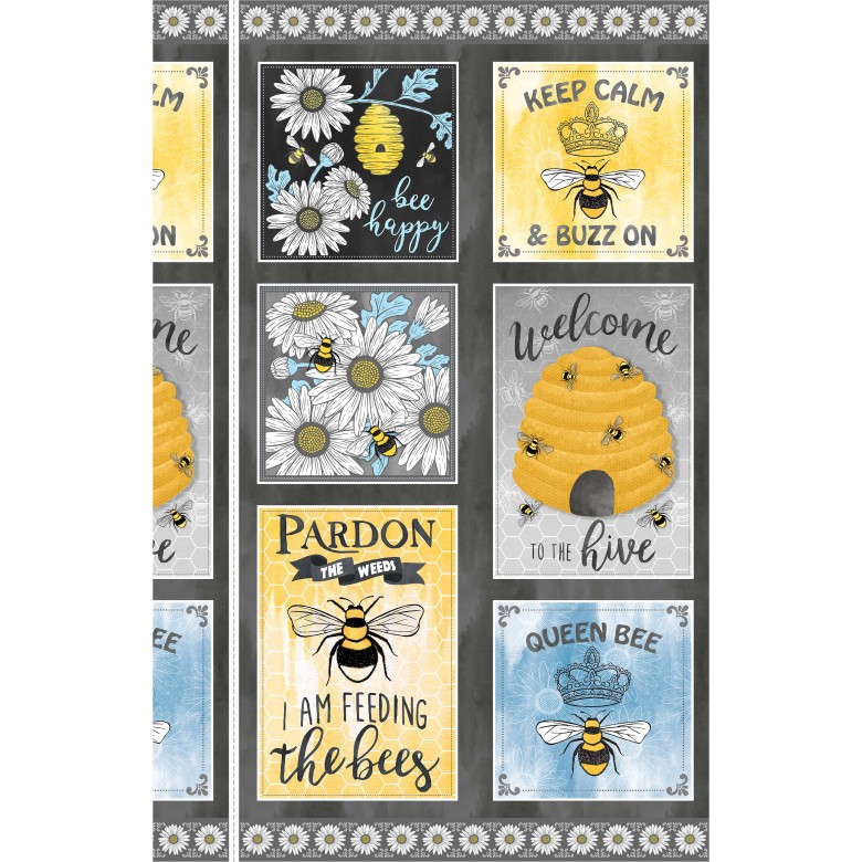 Queen Bee Diane Kappa Bees Beehive Bee Hive Honey Sweet Hive Crown Flowers Florals Nectar Spring Summer Wings Patcwork Panel