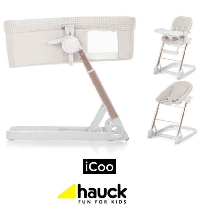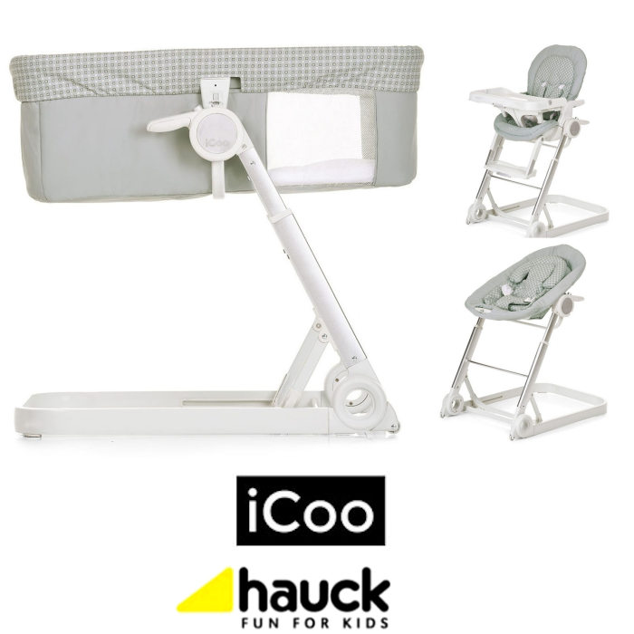 It uses one frame with three different attachments to go from birth to 3 years from bassinet to bouncer to highchair. We now have the amazing Hauck Icoo Grow with Me 3 in 1 Crib Highchair and Rocker on display in our Showroom. The iCoo Grow With Me 1-2-3 combines three products in one.