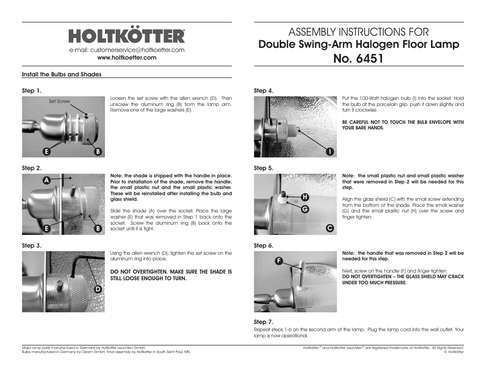 No 6451 Assembly Instructions For Double Swing Arm Halogen Floor Lamp Holtkoetter 6451 User Manual Page 2 2